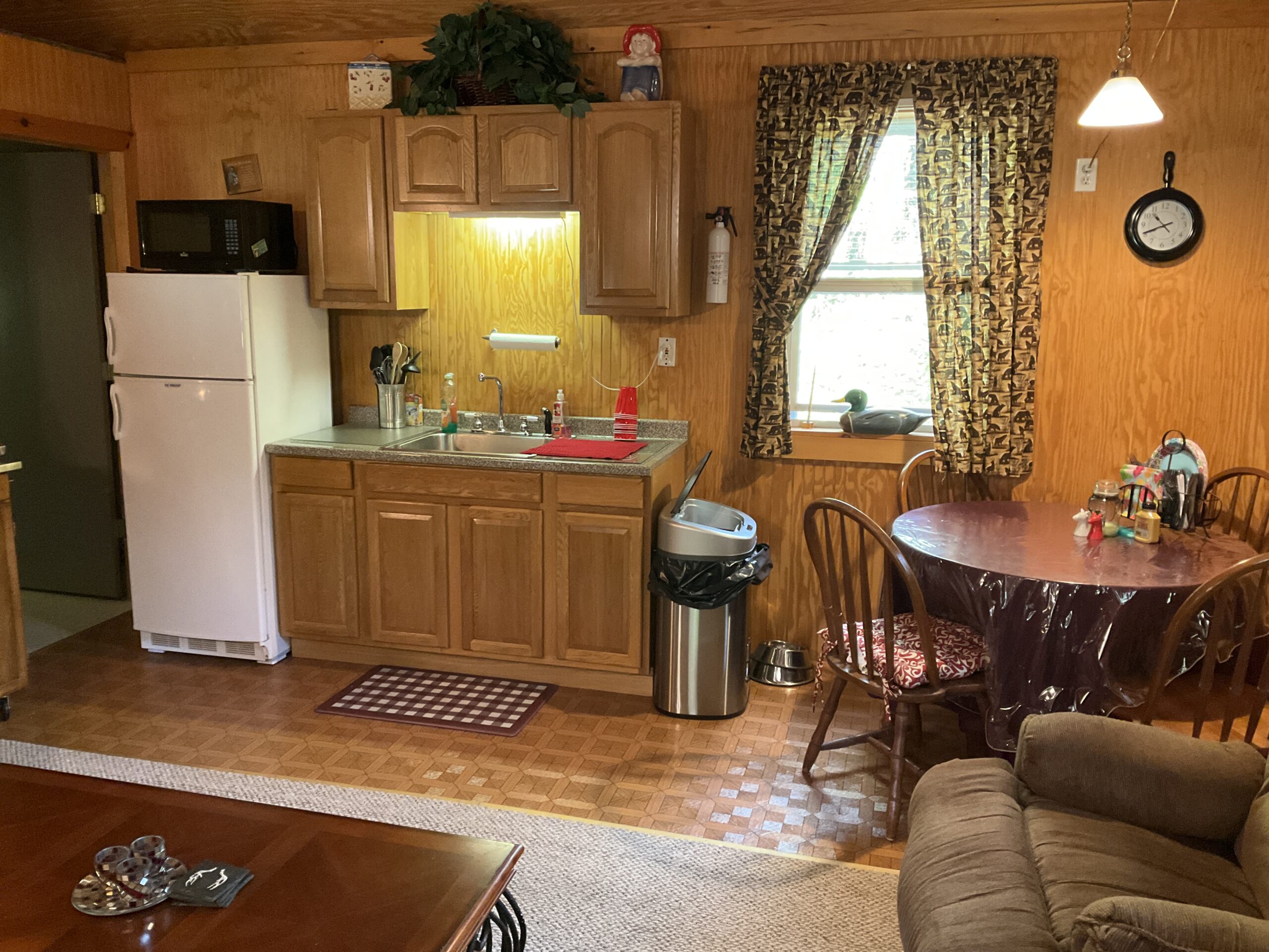 The main attraction to the property was the cabin: it was a 448 sq ft building that was made and equipped in a way to provide a comfortable living in a self-sufficient manner. The cabin was powered by a generator or a bank of batteries and had a well and septic system giving the users all the necessary basics. The fireplace, water heater, and refrigerator were run from a non-leased propane tank together with the hot water and the rest were either electric or gas. Most of the furniture was included in the sale (except for the personal stuff), so it was really a turnkey operation—there was no need to bring the beds or kitchen stuff on the very first day.
