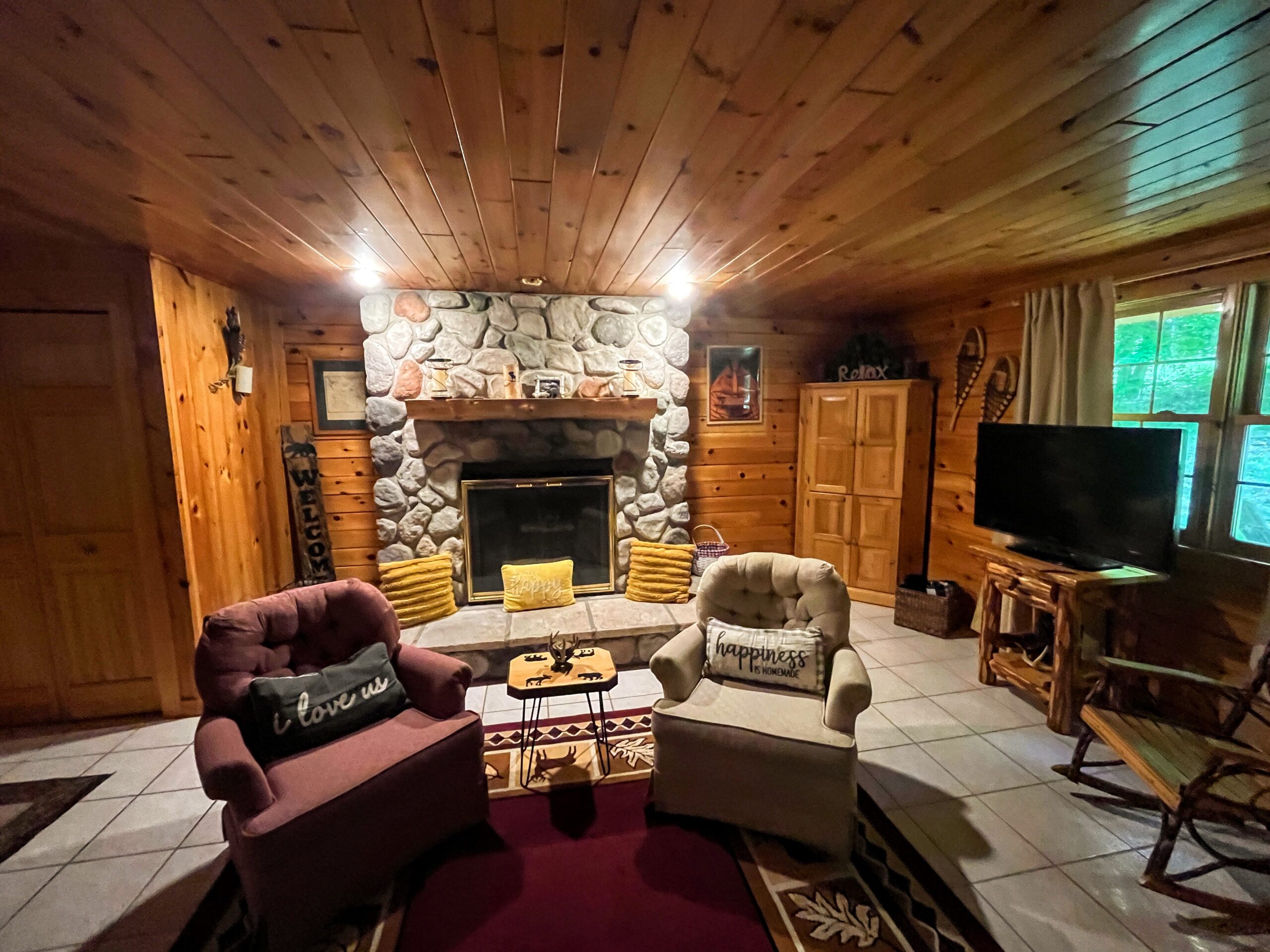 An 880 square feet log cabin is the highlight of this Parishville escape, and it is equally a romantic and practical idea. The log house features an enormous stone fireplace that is great for heating the room on the cold times of the year and is made with love and care. The open design easily moves from the big kitchen—fully equipped with the newest appliances—to a spacious bedroom with a tempting loft that can be used as an extra bedroom or a reading corner.