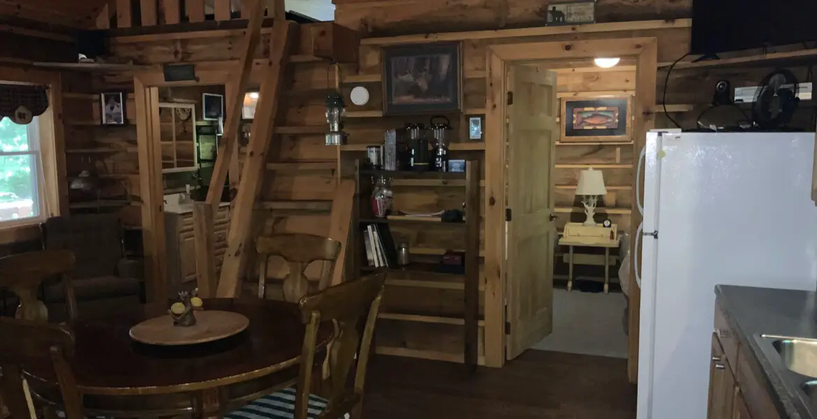 The quaint staircase takes one to a loft bedroom idea with two twin log beds—children, grandchildren, or gear overflow will be the perfect use of the space. Every piece of furniture, every utensil, is part of the transaction. Bring a toothbrush and a cooler; you are ready to move in.