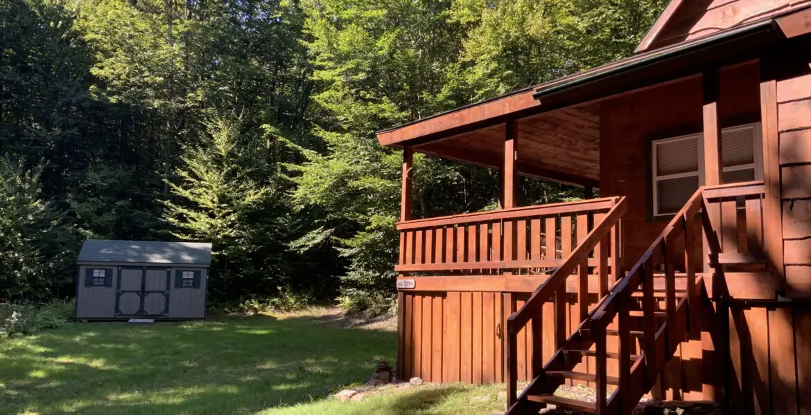 Six point three six acres at the end of a private gravel road—your driveway quite literally ends at the cabin door. No neighbors, no traffic noise, just the sound of hardwood leaves and the occasional barred-owl call. The land directly adjoins Mad River State Forest, thus your playground is instantly extended to thousands of acres of public hunting, hiking, and peacefulness.