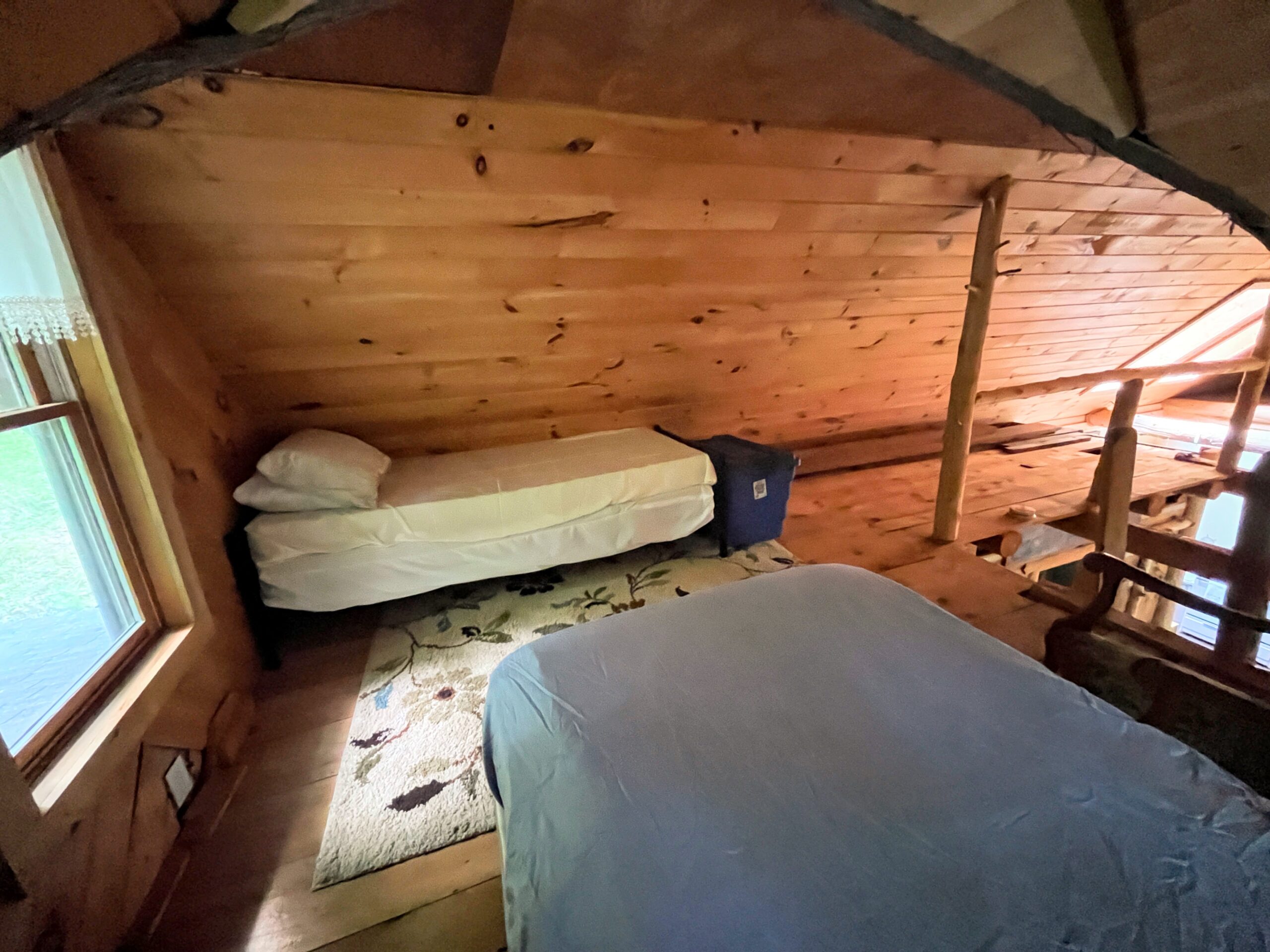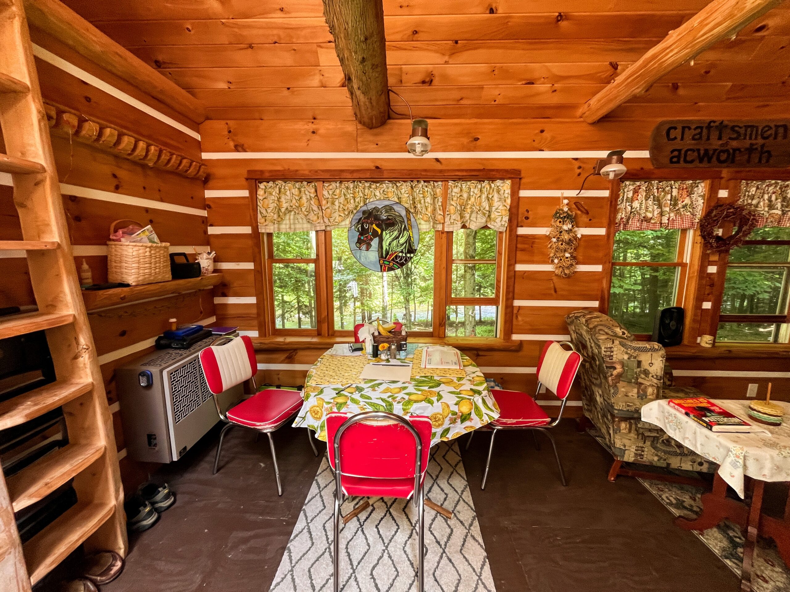Among other things, the off-grid configuration makes the Parishville cabin a really out of the ordinary concept, which is very much in line with the idea of people who opt for sustainable living but don’t want to give up their basics. Heat was provided by a wood stove, and there was also a propane cook stove, refrigerator, on-demand water heater, and lights installed throughout the house. Water was coming from a gravity-fed spring well, which gave high pressure for a shower and sink in the washroom. Though there was only an outhouse at present (with the possibility of septic installation), the cabin was generator-ready and had a solar array – just a new converter was needed to fully power the lights and small appliances.