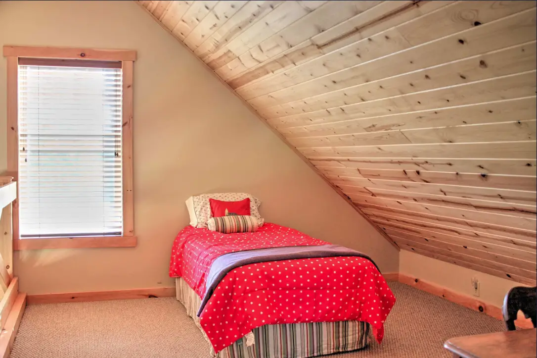 The cabin is a quaint house-style building of the farmhouse type which has been done up in rustic style that goes perfectly with the nature around it. It comes with a plan that is open and, therefore, able to take in maximum light and space, thus creating an atmosphere that is warm and inviting. The principal bedroom contains a king-size bed that is very comfortable while the loft area upstairs has four twin beds and certainly, it is a place where a family or a group of 6 persons can stay. To get to the loft, one needs to go up stairs, so if you happen to be someone with mobility issues, then this is something you should take note of.