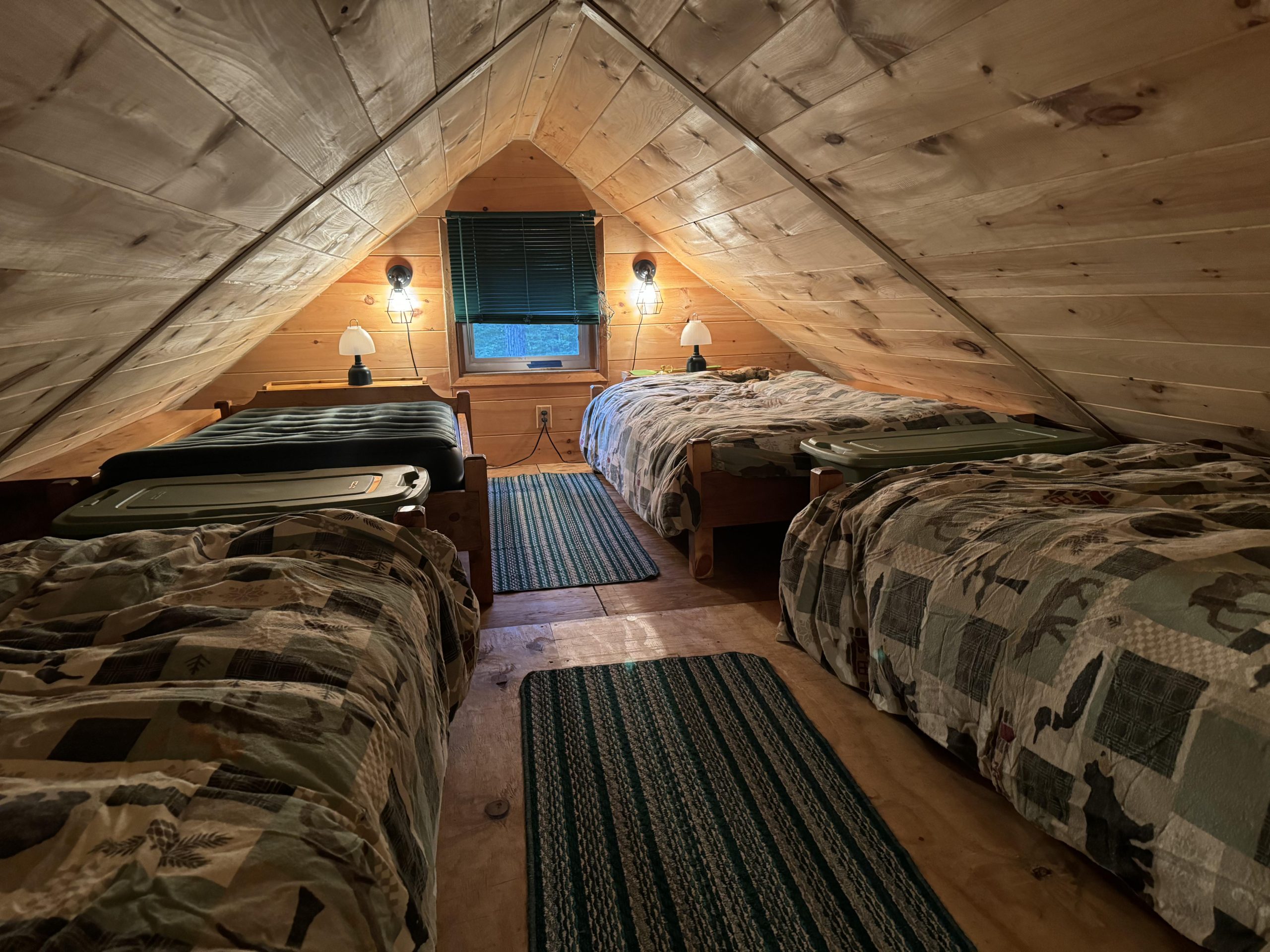 This is not only a summer camp – it has been made for all four seasons. For instance, the woodstove is responsible for heating the cabin during winter and loft’s insulation and tight construction are helpful in retaining the heat. Spring is characterized by wildflowers and birds migration; summer is filled with fishing and swimming; and, during fall, the leaves change color and hunting season starts. The property’s altitude and northern slope are the reasons why there is good snow for winter sports.