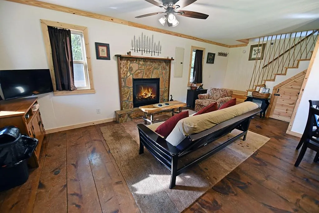 Just picture it: waking up to the river sound, having your coffee on the deck while enjoying the tranquility of nature! This cabin is all about the mountains and is a perfect sanctuary for a family that loves fishing or for people that desire a simple lifestyle.