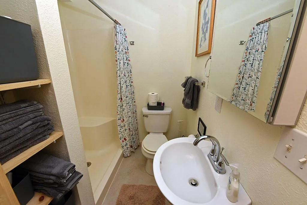 The only bedroom has a full bathroom, so it can be perfect for couples or small families. The country kitchen is equipped with necessary appliances such as a microwave, range/oven, and refrigerator, so after a day on the river, you can quickly prepare your meal. The laundry room is here to serve you with convenience, and the half-finished crawl space basement provides an area for storing things like fishing rods or water toys. A split-unit system along with the fireplace is responsible for heating. While wall units and split-unit air conditioning help to cool down during summer months. An electric water heater together with fiber optic connectivity make sure that no modern essentials are overlooked in this back-to-nature setting.