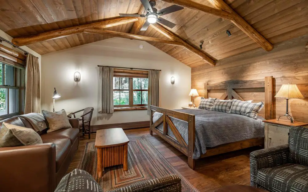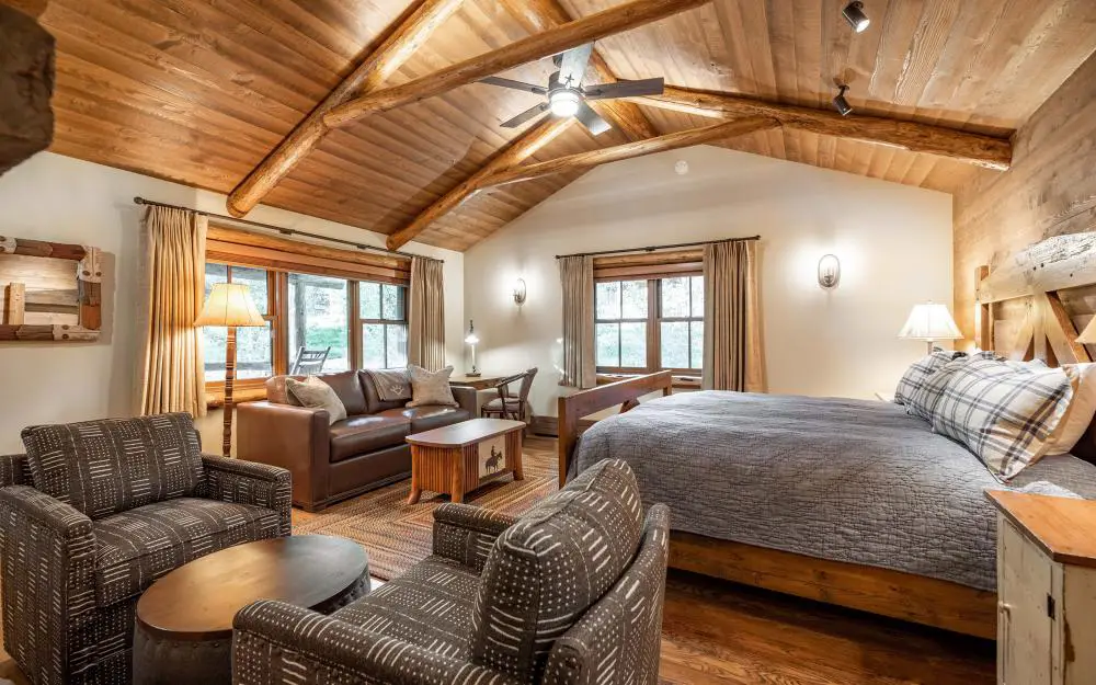 This cabin is a comfortable and warm residence with a king-sized bed, a small relaxing corner with a pull-out sofa bed, and a gas fireplace for warmth. Its smart use of space and tranquil mood make it one of the more extraordinary housing units lavish with ranch’s diverse housing choices. If the travelers are a big group, the Alder can be next to Bridger, and so one can travel with family or friends of different rooms as we get more flexibility and thus we are able to better plan our holiday with them.