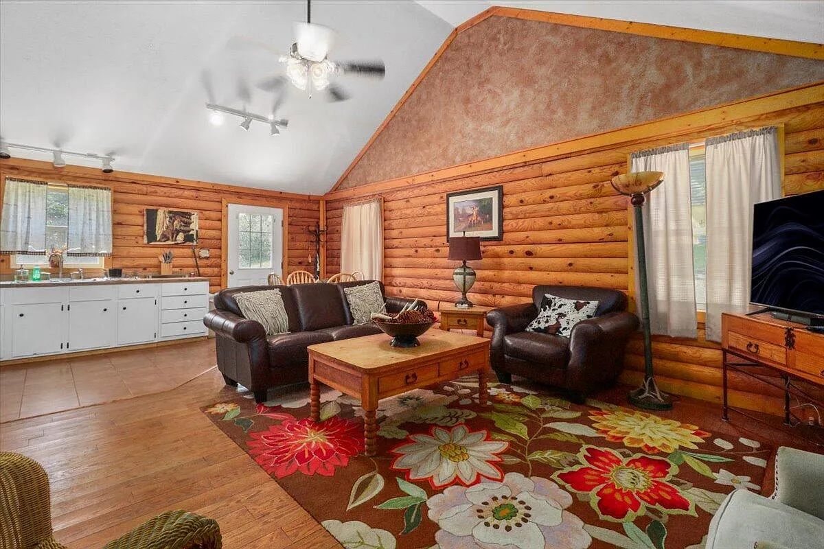 The cabin’s covered deck serves as a front-row seat to it all, ideal for unwinding after a day on the river or trails. With no HOA and low-maintenance grounds, owners spend more time enjoying the property than upkeeping it.