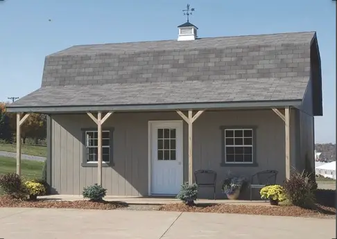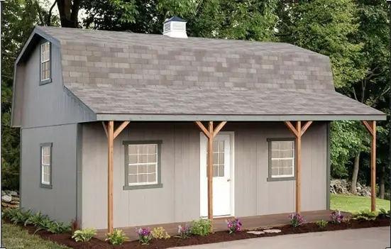 The barn-style cabin, essentially, has chameleon-like versatility which is the thing that mostly distinguishes it from other similar constructions. True, it is a wonderful storage shed for the likes of lawn mowers and bikes but, creative possibilities are extended by the full loft and ample headroom. The loft can serve as a home office with a desk there; the ground floor can be a craft studio or playhouse with shutters as “windows” for kids. Thanks to the 6-foot overhang, a shaded porch area comes into existence which is just right for potting plants or drinking coffee while watching over your garden.