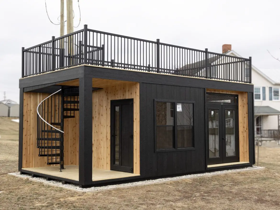 Sheds Unlimited is known for honest pricing and excellent craftsmanship. Their discount stock deals allow you to enjoy premium features like the rooftop deck and spiral staircase at a more approachable investment. Delivery options are available — simply contact the team for details based on your location.