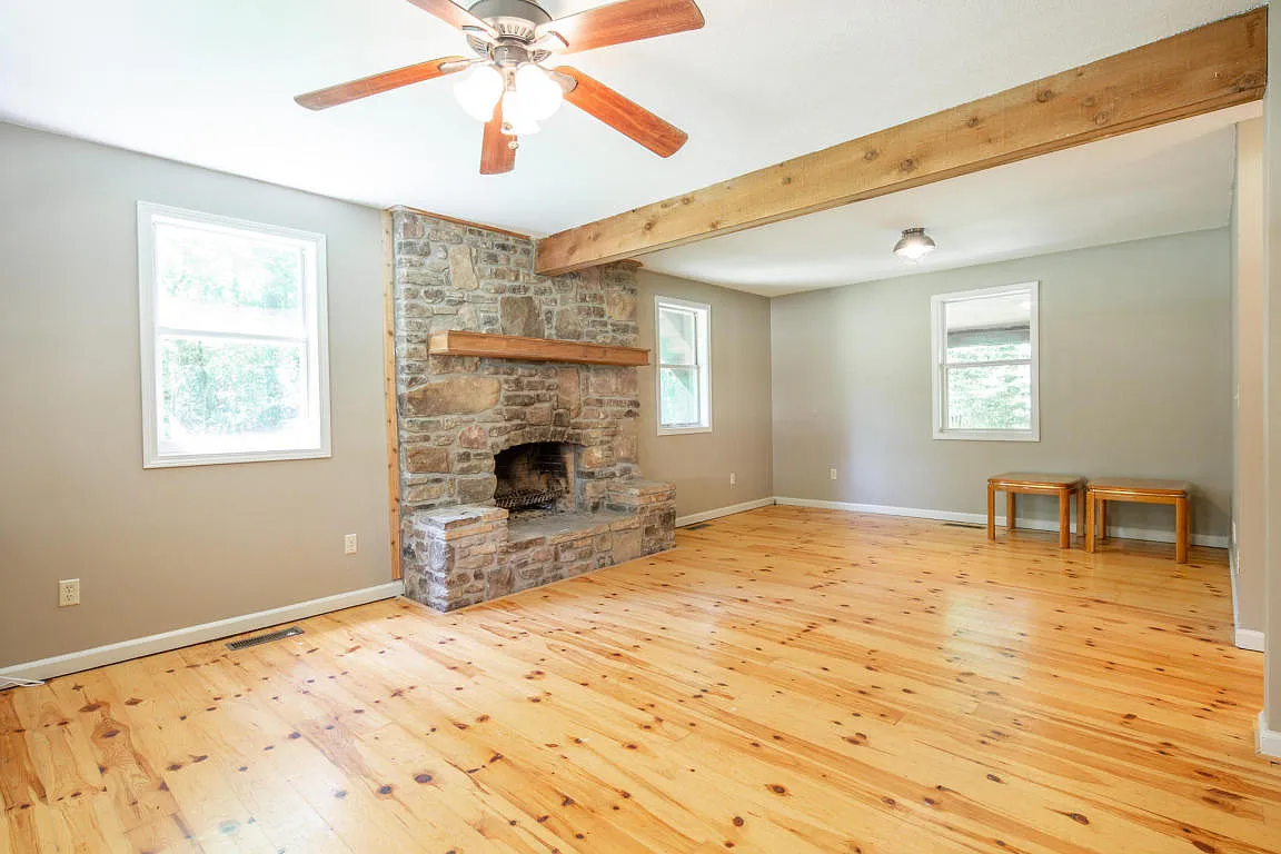 The interior livable area of 1,306 square feet has been carefully and thoughtfully planned out. The first-floor half bath and kitchen make daily habits easy, while the second-floor full bath complements the bedrooms nicely. The rooms are described as having a scenic view and a level lot description, thereby increasing the appeal of the entire place. In case that someone is fond of fireplaces, the stone one, in this case, is not only practical but also a focal point that characterizes and gives coziness.