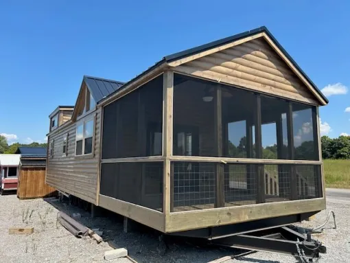 Located in the ares surrounding the Smoky Mountains, and where one could easily get enchanted with the foggy mornings turning into yellow sunsets) the thought of a charming cabin get-away sounds like a plot of a book which one has read multiple times. Nevertheless, what if that perfect vacation was not only a manuscript but also a move-in ready, delivered and assembled, and you could have your very first coffee on the porch? How about Hilltop Structures’ 14×38 Smoky Mountain Cabin Park Model? A stunning cross between the loving roughness of nature and the smooth efficiency of the modern age. With a price tag of $83,345, this show home is more than just a small dwelling; it is a completely outfitted park model RV cabin that caters to anyone who doesn’t want to miss the thrill of the great outdoors while maintaining their cozy lifestyle. Equipped with a screened-in porch for enjoying a summer evening without being disturbed by pesky insects and a bathroom for those relaxing and temperature-controlled bath, it is, indeed, the very last thing one could need from city stress.