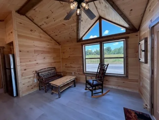 If you imagine waking up to birdsong and fog-covered peaks and your heart is racing, then it is time for you to get in touch with Hilltop Structures. Visit their site, book a viewing of this on-display stunner, or take a video tour—your swing for the future porch is here. At $83,345, the 14×38 Smoky Mountain Cabin is not only affordable but also an invitation to live a simpler life, love more deeply, and let the mountains do their healing magic. What is holding you back from accepting the cabin life?